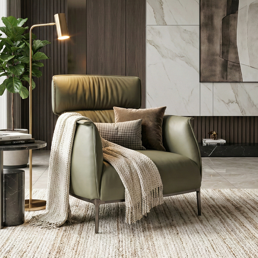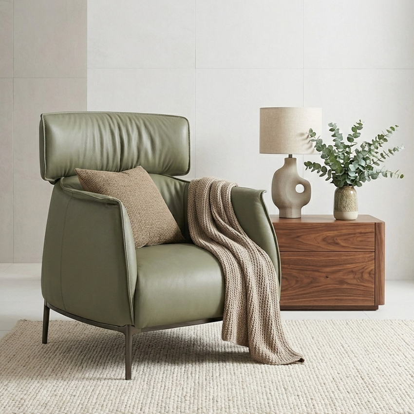 Santafe-Olive Leather Single Chair